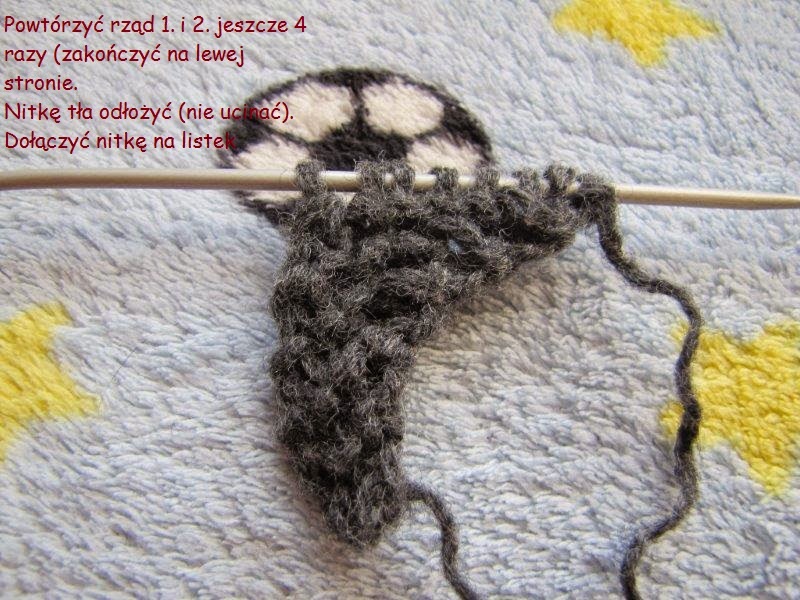Po dobraniu odpowiedniej liczby oczek kontynuujemy przerabianie tułowia taką samą ilość okrążeń ile wcześniej zrobiliśmy rzędów klapki.